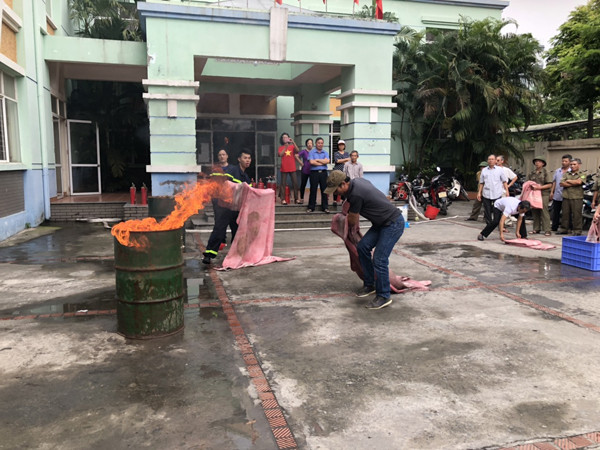 Kết thúc phần lý thuyết và trao đổi kinh nghiệm, lực lượng dân phòng còn được hướng dẫn và trực tiếp thực hành các động tác cứu người cơ bản, các tư thế cầm lăng chữa cháy; cách sử dụng các loại bình chữa cháy xách tay và các phương tiện chữa cháy được trang bị; cách triển khai đội hình máy bơm chữa cháy cũng như công tác cứu nạn cứu hộ.