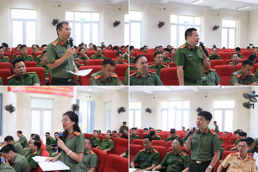 Đại diện các phòng chức năng CATP Hà Nội phát biểu, đánh giá các mặt công tác của Công an phường Nghĩa Đô.