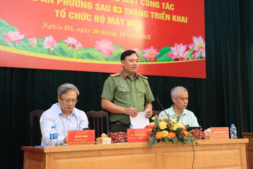 Phát biểu kết luận buổi làm việc, Đại tá Nguyễn Tiến Đạt – Phó Giám đốc CATP ghi nhận và biểu dương tinh thần trách nhiệm, sự chủ động, nỗ lực của cấp ủy, chính quyền và lực lượng Công an phường Nghĩa Đô trong triển khai mô hình tổ chức mới, nhất là việc tham mưu hiệu quả, xử lý kịp thời các vụ việc phát sinh, giữ vững ổn định địa bàn.