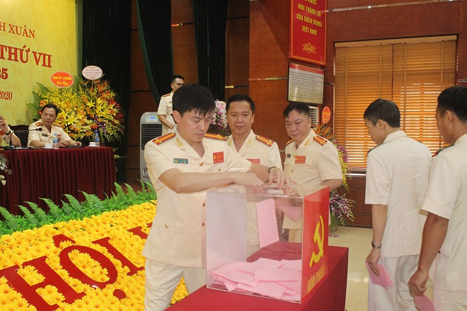 Đại biểu bỏ phiếu bầu Ban chấp hành Đảng bộ Công an quận Thanh Xuân nhiệm kỳ 2020 - 2025