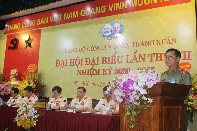 Thay mặt Đảng ủy Ban Giám đốc CATP, Thiếu tướng Đào Thanh Hải chúc mừng và biểu dương các thành tích Đảng bộ Công an quận Thanh Xuân đã đạt được trong nhiệm kỳ vừa qua.