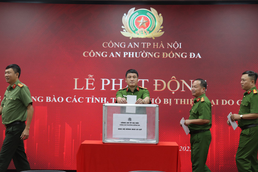Cũng trong khuôn khổ chương trình, Công an phường Đống Đa đã tổ chức Lễ phát động ủng hộ đồng bào bị thiệt hại do bão số 10 với sự tham gia hưởng ứng của Đại tá Nguyễn Tiến Đạt, Phó Giám đốc CATP, đại diện chính quyền địa phương phường Đống Đa và toàn thể CBCS Công an phường. Đây là hoạt động mang ý nghĩa nhân văn sâu sắc, thể hiện tinh thần đoàn kết, tương thân tương ái, chia sẻ khó khăn, góp phần giúp người dân vùng thiên tai sớm ổn định cuộc sống, khôi phục sản xuất.