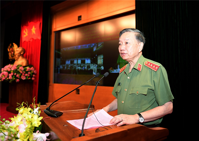 Bộ trưởng Tô Lâm phát biểu tại buổi gặp mặt truyền thống các thế hệ cán bộ lãnh đạo cao cấp, đoàn viên, thanh niên ưu tú trong CAND nhân kỷ niệm 74 năm Ngày truyền thống CAND Việt Nam (19/8/1945 - 19/8/2019) và 14 năm Ngày hội Toàn dân bảo vệ an ninh Tổ quốc (2005 - 2019).