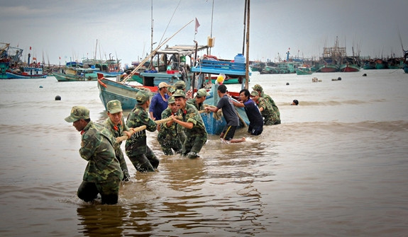 Lực lượng Quân đội tham gia giúp các ngư dân đưa tàu thuyền về nơi an toàn để tránh bão