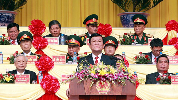 Kỷ niệm 60 năm Chiến thắng Điện Biên Phủ trong không khí cả nước đang ra sức thi đua thực hiện thắng lợi Nghị quyết Đại hội XI của Đảng; phát huy truyền thống và tinh thần quyết chiến, quyết thắng của Chiến dịch Điện Biên Phủ, thay mặt lãnh đạo Đảng, Nhà nước, tôi kêu gọi đồng bào và chiến sĩ cả nước, kiều bào ta ở nước ngoài đồng tâm, hiệp lực, tận dụng vận hội, thời cơ, vượt qua khó khăn, thách thức, đẩy mạnh toàn diện sự nghiệp đổi mới đất nước vì mục tiêu cao cả dân giàu, nước mạnh, dân chủ, công bằng, văn minh.