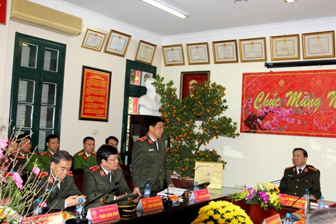 Thay mặt tập thể CBCS Phòng CSHS - CATP Hà Nội, Đại tá Dương Văn Giáp, Trưởng Phòng CSHS báo cáo đồng chí Bộ trưởng tình hình, kết quả công tác của đơn vị năm 2016 và các mặt công tác được Giám đốc CATP giao triển khai đảm bảo ANTT dịp Tết Nguyên đán Đinh Dậu 2017.