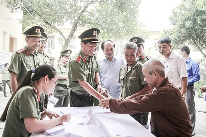 Thiếu tướng Đoàn Ngọc Hùng, Phó Giám đốc CATP Hà Nội động viên, chỉ đạo, kiểm tra các đoàn viên CATP Hà Nội khám bệnh, phát thuốc cho nhân dân trên địa bàn
