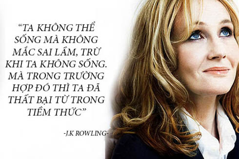 Bà J.K Rowling là mẹ đẻ của tác phẩm Harry Porter ăn khách nhất mọi thời đại. Bà hiện là nữ nhà văn giàu nhất nước Anh, song hẳn không mấy ai biết rằng bà từng là một người đàn bà nghèo túng bị chồng bỏ, suốt ngày phải cắm cúi bên bàn viết để kiếm từng đồng nuôi con. Nếu nhìn sâu vào đôi mắt của J.K Rowling, người ta sẽ nhận thấy có nét gì đó phảng phất nỗi buồn song phong cách sống của bà thì lại rất lạc quan. Có lẽ cũng chính vì triết lý sống coi lỗi lầm là bước đệm cho thành công nên nữ văn sỹ mới có thể thành công như ngày hôm nay. Bà là người có tư tưởng coi sai lầm chính là một phần của cuộc sống. Với bà, nếu không có sai lầm thì tức là ta không còn sống.