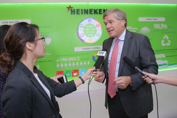 Tổng Giám đốc Heineken Vietnam Leo Evers trả lời phỏng vấn báo chí tại Diễn đàn