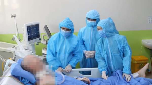 Đặc biệt, các bác sĩ đã tiến hành ngưng máy thở cho bệnh nhân tập thở ngắt quãng. Đồng thời, tiến hành tập vật lý trị liệu cho người bệnh 2 lần/ngày, điều chỉnh nước điện giải và săn sóc vết loét cùng cụt.