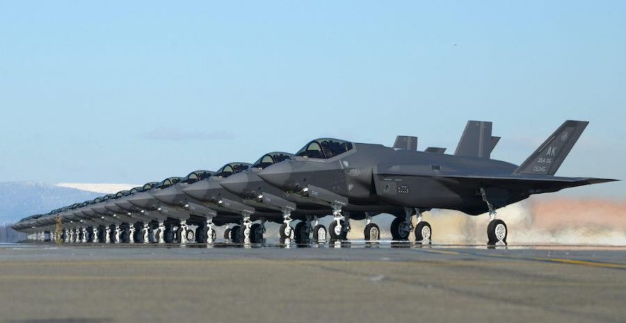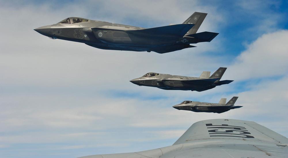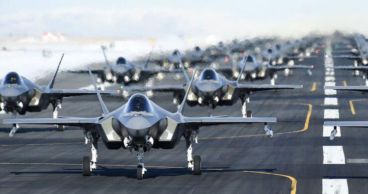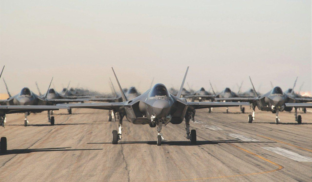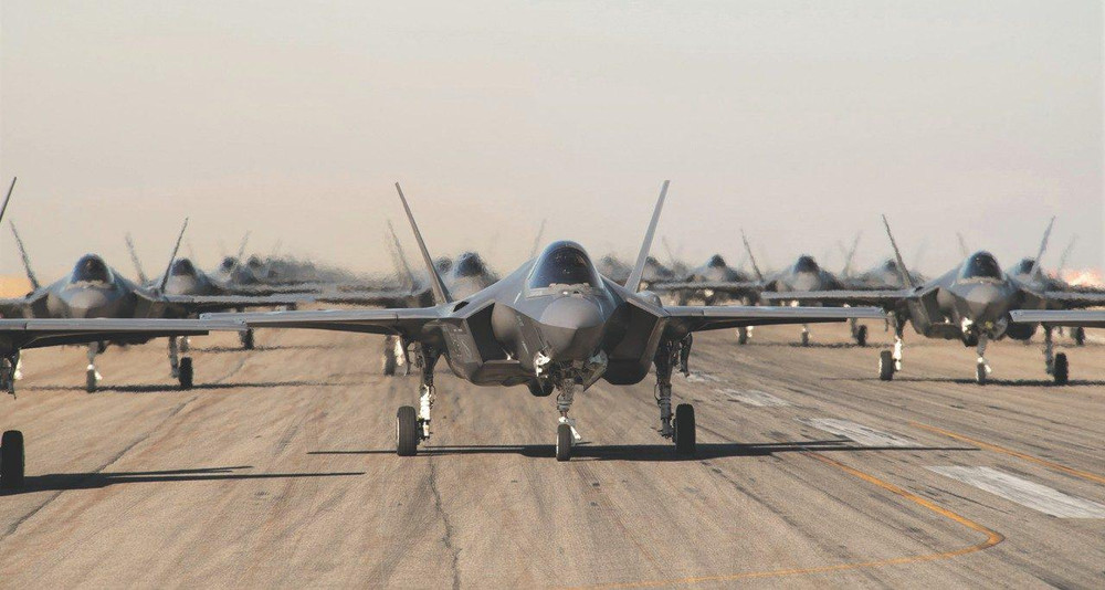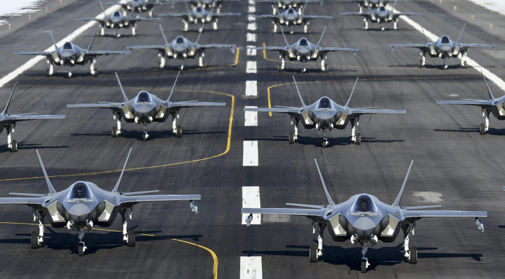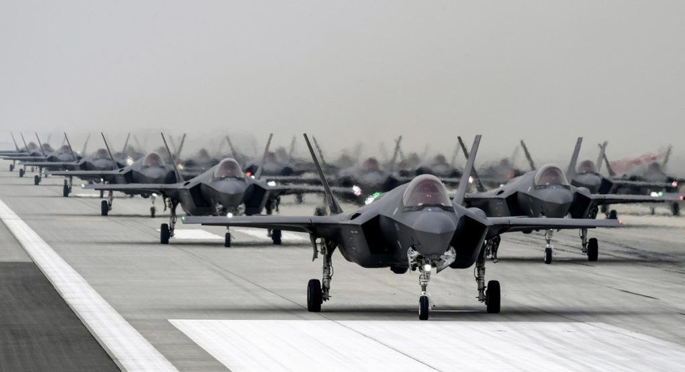 Phi đội 28 tiêm kích F-35A Hàn Quốc thực hiện màn 'voi đi bộ'