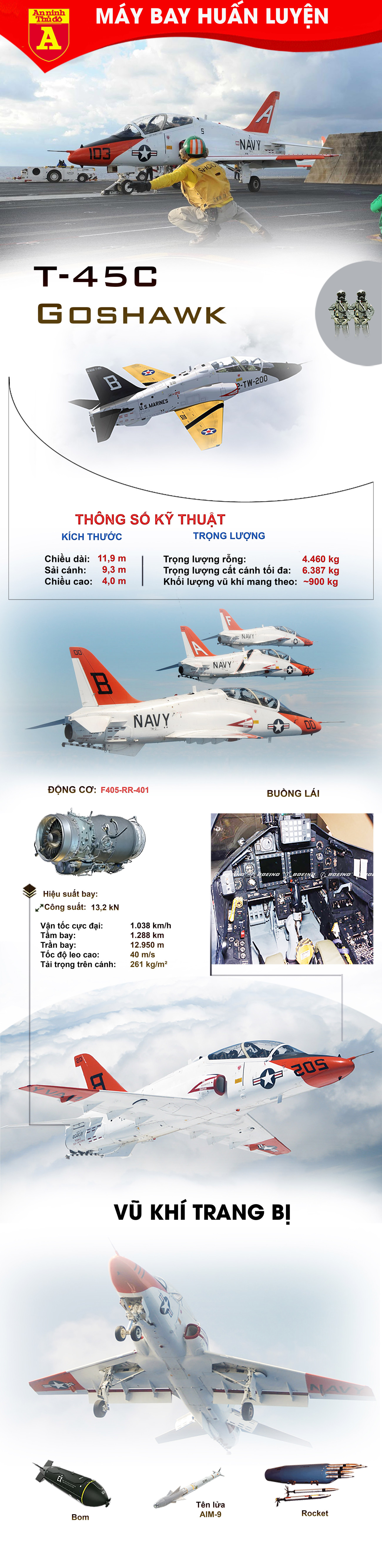 “Vì lý do thận trọng, hoạt động của tất cả máy bay T-45C Goshawk đã bị tạm dừng trong khi Trưởng phòng Huấn luyện Không quân hải quân và Bộ Tư lệnh Hệ thống Không quân hải quân Mỹ sẽ đánh giá khả năng tiếp tục huấn luyện an toàn của phi đội sau sự cố lỗi động cơ", Hải quân Mỹ cho biết.