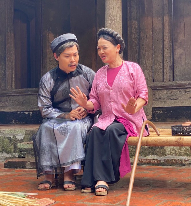 Đạo diễn Linh Đồng và NSƯT Thu Hạnh trên phim trường "Giấc mộng quan trường"