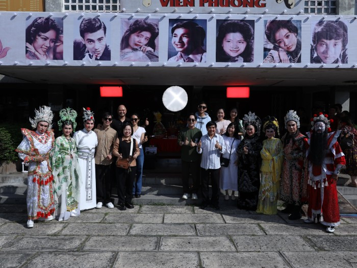 Ở đó, khán giả bắt gặp hình ảnh quen thuộc của những người nghệ sĩ cải lương với trang phục sân khấu và các đạo cụ đặc trưng, ấn tượng. Đó là hình ảnh ông bầu chân chất. Hình ảnh thầy đờn giản dị ôm đờn. Là hình ảnh cô đào duyên dáng cùng chiếc quạt giấy. Là kép chính nâng niu chiếc mũ sân khấu trên tay...