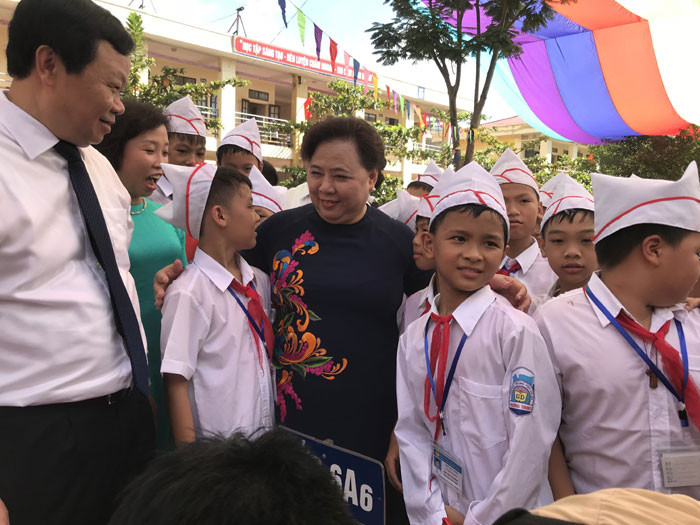 Phó Bí thư Thường trực Thành ủy Ngô Thị Thanh Hằng dự khai giảng tại Trường THCS Nam Phương Tiến A
