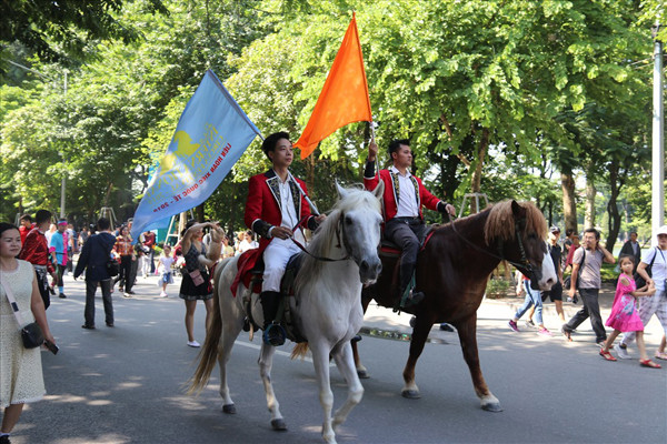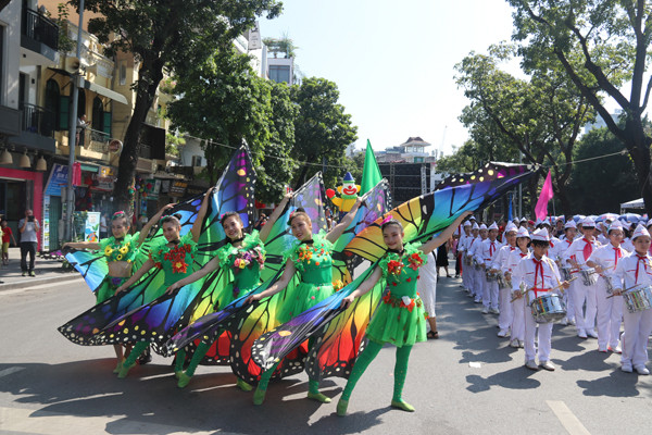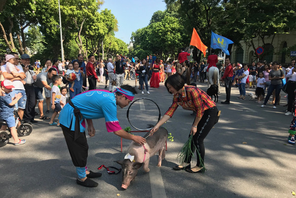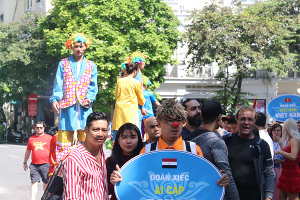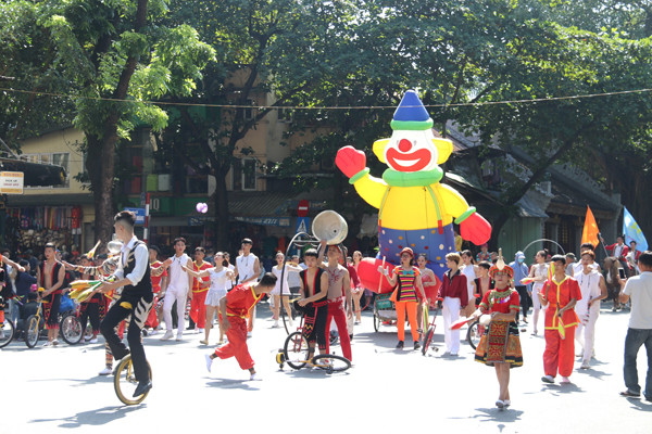 Phố đi bộ Hồ Gươm sôi động cùng màn diễu hành của các nghệ sỹ xiếc