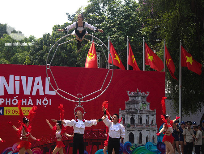 ANTD.VN - Ngày 19/05/2019, tại phố đi bộ Hồ Gươm đã diễn ra Carnival đường phố Hà Nội 2019 với sự tham gia biểu diễn của 80 nghệ sĩ chuyên nghiệp Việt Nam và quốc tế. Mặc dù phải biểu diễn ngoài trời dưới cái nắng gắt của Hà Nội, nhưng các nghệ sĩ đã có phần thể hiện mãn nhãn khiến người dân và du khách thích thú.