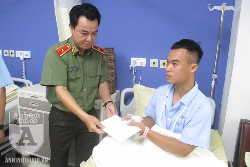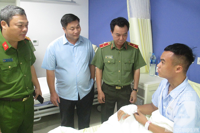 Chiều ngày 30-7, Thiếu tướng Nguyễn Anh Tuấn - Ủy viên Ban thường vụ Đảng ủy, Phó Giám đốc, Thủ trưởng Cơ quan An ninh điều tra CATP Hà Nội - cùng đại diện Ban chỉ huy CAQ Hoàng Mai đã tới Bệnh viện Trung ương Quân đội 108 để thăm Trung úy Nguyễn Thanh Tùng - cảnh sát khu vực, CAP Trần Phú.