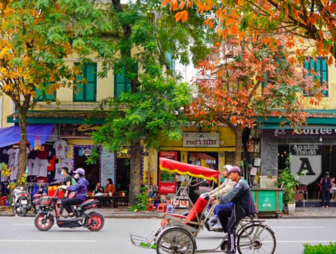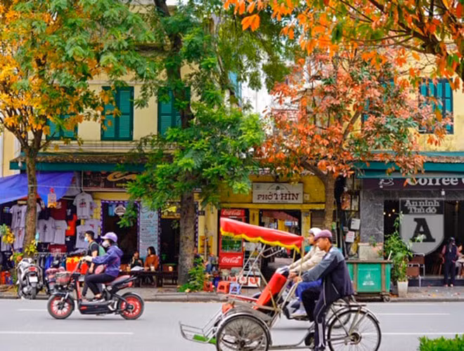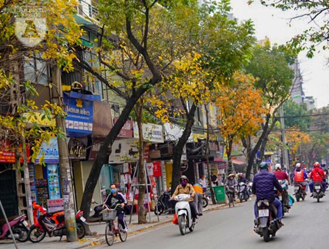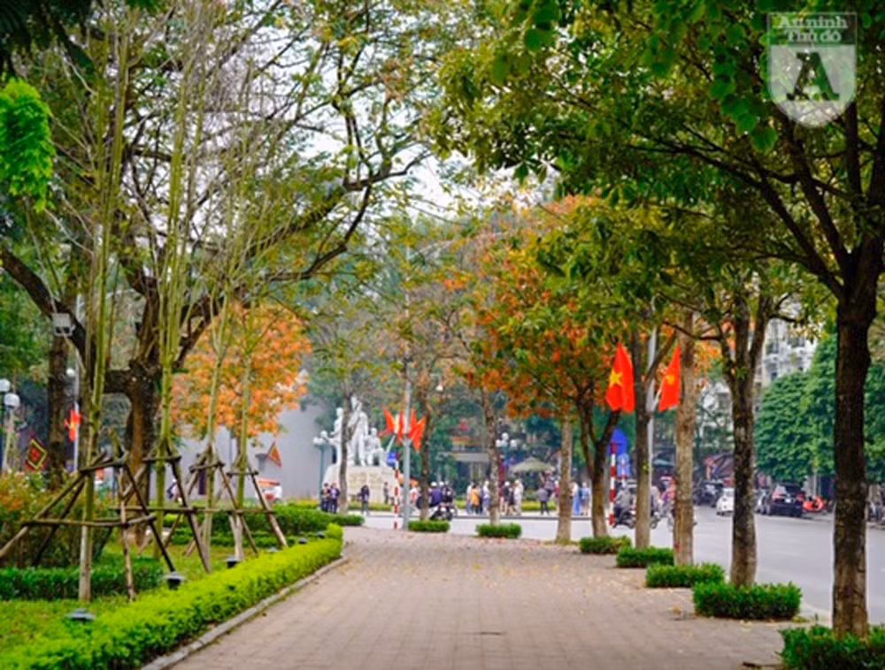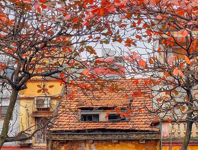 ANTD.VN - Phố phường Hà Nội những ngày tháng 3 mang một vẻ đẹp ngỡ ngàng, đầy màu sắc. Này là chân tháp nước Hàng Đậu vàng rực lộc vừng trút lá; kia là mái ngói cổ trên phố Hàng Bạc lẩn khuất dưới cây bàng lá đỏ... tất cả tạo thành một bản tổng phổ màu sắc đầy quyến rũ.