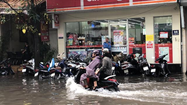 Nhiều tuyến phố ở trung tâm Hà Nội đã biến thành sông sau trận mưa giông dồn dập kéo dài khoảng 1 tiếng chiều nay