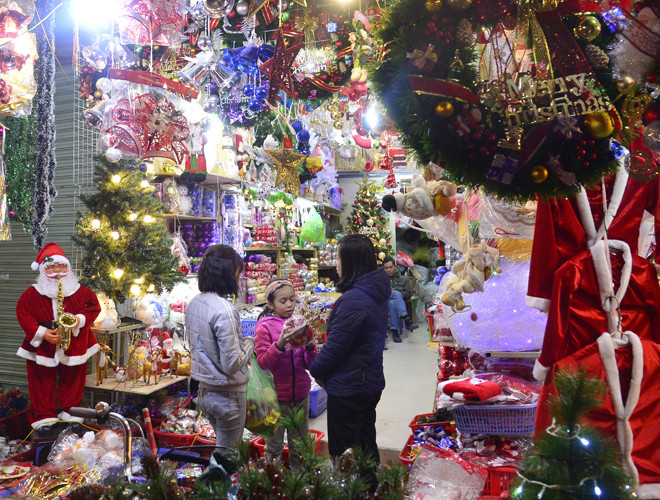 ANTD.VN - Phố Hàng Mã (Hà Nội) những ngày này rực rỡ sắc màu của các mặt hàng trang trí Noel, thu hút rất đông đảo bạn trẻ, cũng như khách du lịch đến mua sắm, tham quan để chuẩn bị cho Giáng sinh.