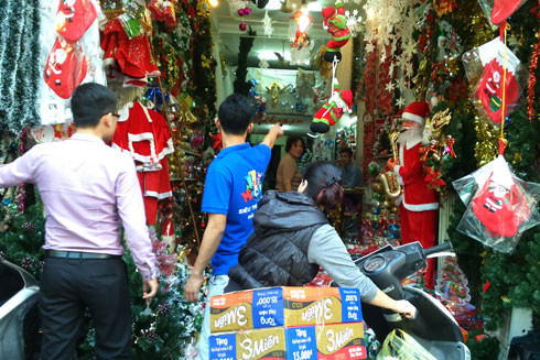 Các cửa hàng trên phố Hàng Mã những ngày này luôn nhộn nhịp người mua các mặt hàng trang trí cho ngày Giáng sinh