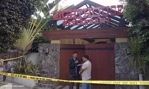 Cảnh sát phong tỏa nhà hàng Light House, nơi vụ nổ súng xảy ra. Ảnh: CNN