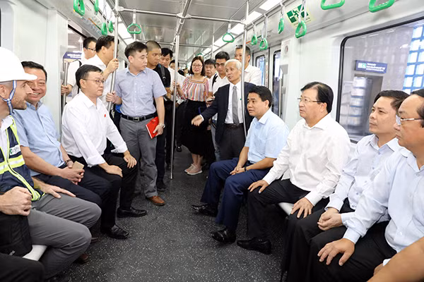 Phó Thủ tướng Trịnh Đình Dũng đi thử tàu điện tuyến đường sắt đô thị Cát Linh - Hà Đông