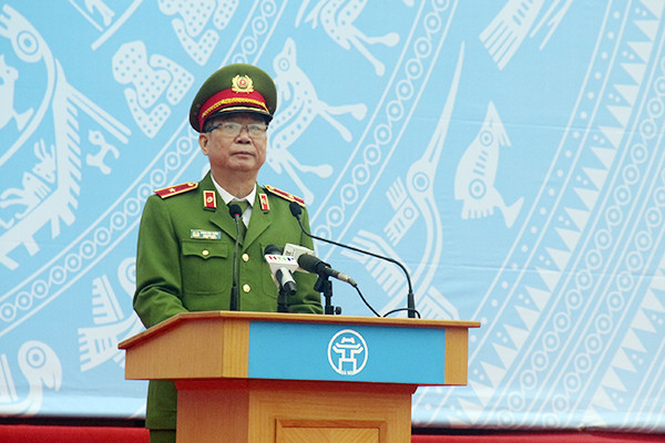 Thiếu tướng Đinh Văn Toản, Phó Giám đốc CATP Hà Nội phát biểu hưởng ứng Năm ATGT 2018