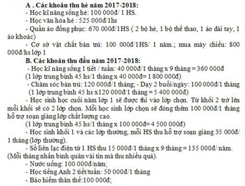 Trường tiểu học Đặng Cương, Hải Phòng đặt ra các khoản thu lên đến chục triệu đồng