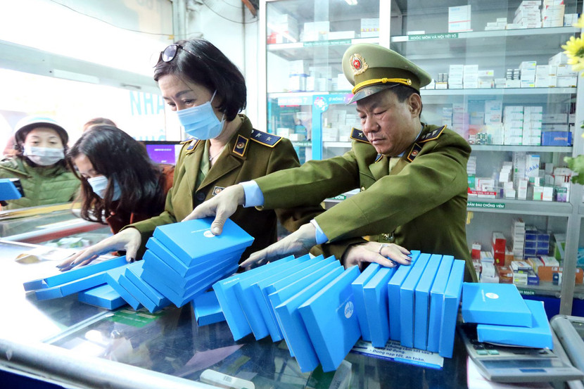 Lực lượng quản lý thị trường kiểm tra xử lý một trường hợp tăng giá khẩu trang tại Hà Nội ngày 31-1