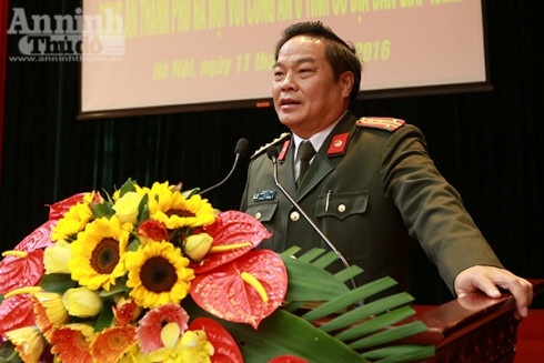 Thiếu tướng Đoàn Duy Khương - Ủy viên Ban Thường vụ Thành ủy, Bí thư Đảng ủy, Giám đốc CATP Hà Nội phát biểu tại hội nghị quy chế phối hợp