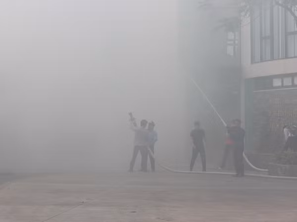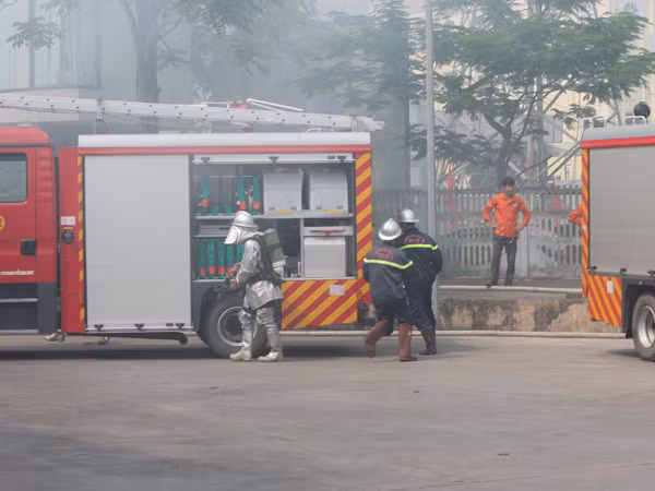 Lực lượng chữa cháy thực tập chữa cháy tại lễ phát động tháng an toàn vệ sinh, lao động, cháy nổ