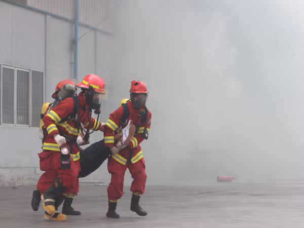 Lực lượng CHCN nạn nhân mắc kẹt trong đám cháy giả định đưa đến nơi an toàn