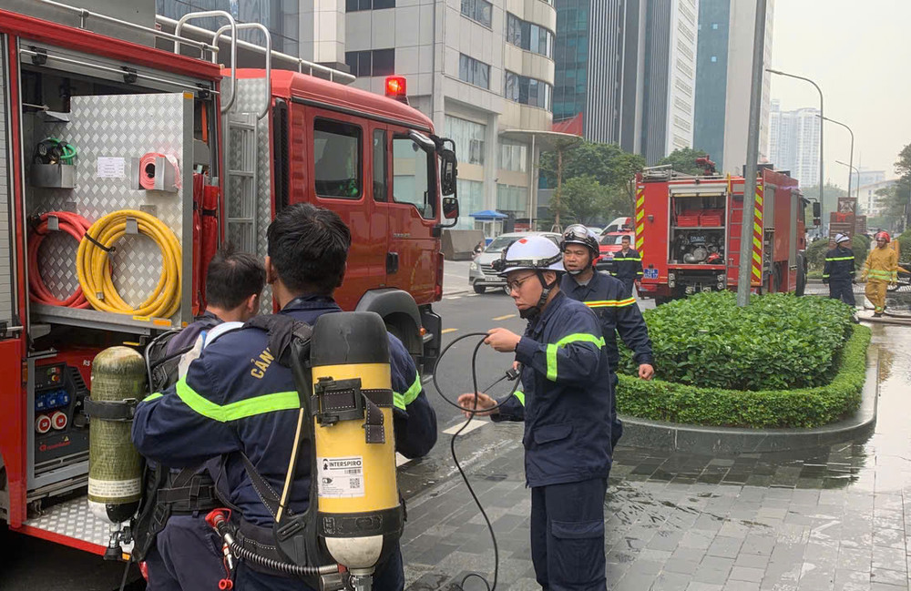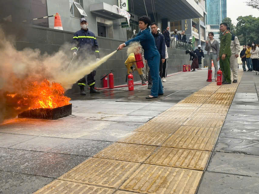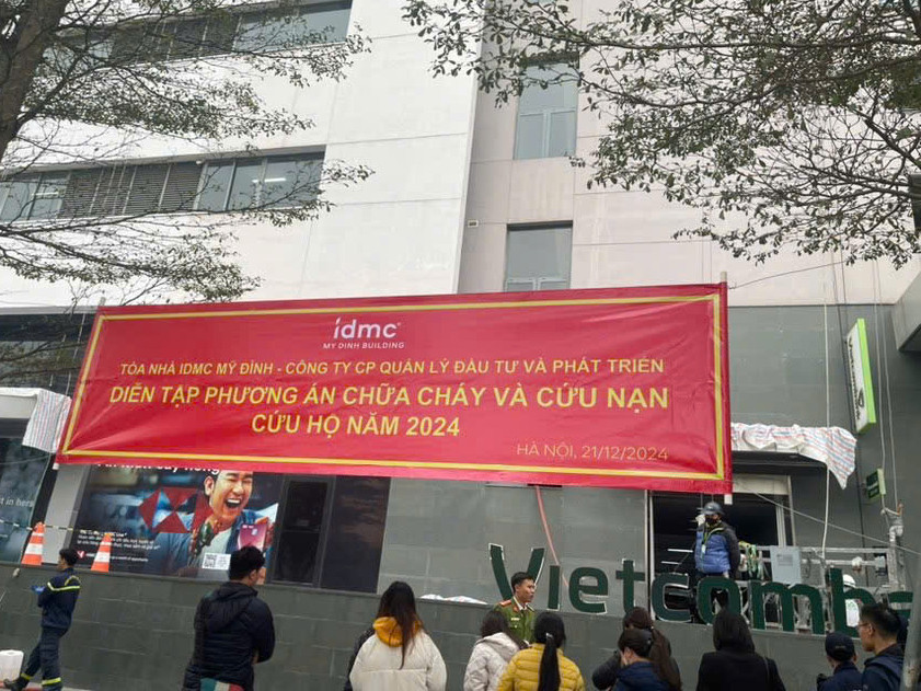 Phối hợp xử lý nhanh tình huống giả định cháy nguy hiểm tại tòa nhà IDMC