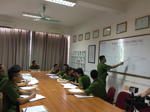 Một buổi giao ban nghiệp vụ của lực lượng điều tra tội phạm về ma túy - Công an quận Long Biên