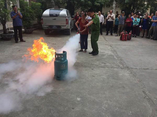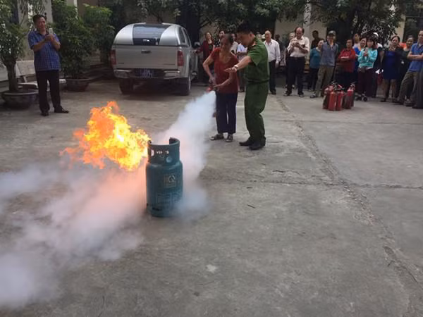 Trường hợp, nếu bình gas đã xảy cháy thì bình tĩnh dùng bình bột xách tay phun thẳng vào đám lửa. Lưu ý, bình gas trong trường hợp hở, bốc cháy thì không thể phát nổ được, do đó cần bĩnh tĩnh xử lý.