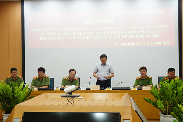 Thực hiện Quyết định số 1232/QĐ-BCA-X05 ngày 21-2-2020 của Bộ trưởng Bộ Công an về việc tiến hành thanh tra việc chấp hành các quy định của pháp luật về phòng cháy và chữa cháy (PCCC) đối với UBND TP Hà Nội và các cơ quan, đơn vị trực thuộc gồm: Văn phòng UBND TP Hà Nội, Công an TP, Ban Quản lý các khu công nghiệp và chế xuất Hà Nội, Sở Xây dựng TP Hà Nội, Công ty Trách nhiệm hữu hạn Một thành viên Nước sạch Hà Nội, UBND các quận: Đống Đa, Hai Bà Trưng, Cầu Giấy, Long Biên và UBND huyện Thanh Trì.