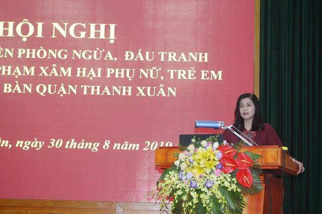 Phát biểu khai mạc hội nghị, bà Lê Mai Trang, Phó Chủ tịch UBND quận Thanh Xuân nhấn mạnh ý nghĩ thiết thực của hội nghị này trong đời sống: “Hiện nay, diễn biến liên quan đến các vụ việc xâm hại phụ nữ, trẻ em ngày càng phức tạp hơn. Đối tượng xâm hại không chỉ là phụ nữ, trẻ em gái mà có cả trẻ em trai. Trước tình hình này, UBND quận nhận thấy cần cung cấp thông tin, trang bị kiến thức cho các đồng chí ở các phường, cơ quan, đơn vị, trường học về tình hình tội phạm này, để làm tốt công tác phòng ngừa ngay tại cơ sở. Việc bảo vệ phụ nữ, trẻ em là trách nhiệm của cả cộng đồng”.