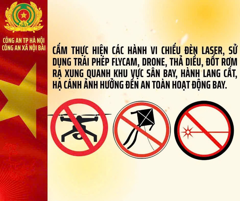 Cảng hàng không quốc tế Nội Bài là công trình quan trọng liên quan an ninh quốc gia. Mỗi ngày có hàng trăm chuyến bay cất/hạ cánh. Đặc biệt trong thời gian cao điểm diễn ra nhiều chuyến bay quan trọng đón các đoàn khách quốc tế đến nước ta dịp lễ kỷ niệm 80 năm Quốc khánh 2/9, chỉ một một tác động nhỏ như có vật thể lạ (diều, đèn trời, UAV, Flycam...), chiếu tia laser, ánh sáng cường độ lớn, ảnh hưởng đến phi công trên đường cất, hạ cánh của máy bay có thể dẫn đến những hậu quả vô cùng nghiêm trọng.