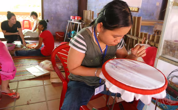 Sara dạy các em cánh làm cho sản phẩm tinh tế hơn
