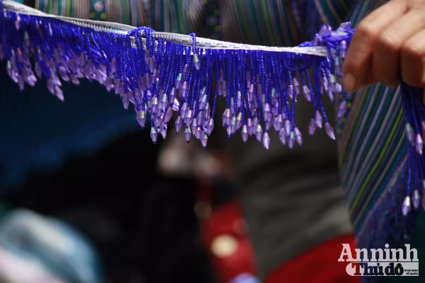 Hạt cườm dùng để đính kèm vào áo của phụ nữ H'Mông cũng được bày bán tại chợ...