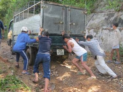 Đi được một lát thì tới con sông Tiên chảy ngang qua xã, đã vào mùa nước cạn, có mấy người đàn ông đang cởi trần làm cát, thấy Trèo đi qua thì gọi giật lại chào. Anh giới thiệu: “Trai làng mình đấy, cũng đều chưa vơ. Hai chị đến lúc này thì không gặp được hết đâu, vì phần nhiều mọi người đang đi làm ở Đà Nẵng với Sài Gòn, phải đến tết mới về, bây giờ chỉ còn một số người ở nhà làm cát thôi”.