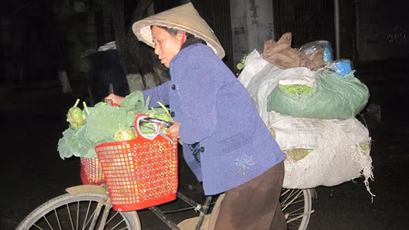 Trong vai một khách đi mua hàng rau tại chợ đêm, tôi đã cố gắng dạo qua tất cả các ngõ ngách các gian hàng, ở một góc tối mập mờ dưới anh đèn đường là một cụ bà đã bước sang cái tuổi mà đáng ra phải được nghỉ ngơi phụng dưỡng thì cụ vẫn phải ngồi đây, vào lúc trời vừa sang canh giá lạnh vô cùng. “Rau này nhà bà trồng ở vườn đó, không có phun thuốc sâu gì đâu, chú mua cho bà mớ đi. Về ăn ngon thì hôm sau cứ đến đây mà mua, ngày nào bà cũng ngồi ở góc tối này”, lời mời của cụ bà khập khễnh, tay run run khiến tôi cảm thấy bối rối. Hỏi ra mới biết tên cụ là Phạm Thị Liễu, năm nay đã 73 tuổi, nhà cụ ở huyện Bình Lục (Hà Nam) cách thành phố Phủ Lý hơn 10 km. Cụ Liễu kể: “Chồng mất sớm, nhà có 3 mẹ con, nhưng cả 2 đứa đều bị bệnh tâm thần không làm gì được, suốt ngày đi lang thang. Mọi sinh hoạt của mấy mẹ con chỉ trông chờ vào mấy đồng tiền lẻ từ những mớ rau đem đi bán ở đây. Nhưng ở chợ này chủ yếu người mua hàng là các người bán buôn đem đi tiêu thụ nơi khác chứ người dân đi mua hàng thì rất ít. Họ bán cả ô tô rau thì hết chứ mình bán mấy mớ thì lại nhiều bữa ế phải cõng về”. Xót xa hơn khi nghe cụ Liễu kể về hành trình hàng ngày đi chợ mệt nhọc cần mẫn của mình. Để đến chợ đúng giờ thì cụ Liễu phải cùng cái xe đạp cà tàng ra khỏi nhà từ nhà lúc 22h đêm ngày hôm trước để đến chợ vào lúc 0 giờ ngày mới. “Mang tiếng đi xe đạp nhưng vì ban đêm đèn pin thì mập mờ, mà mắt lại kém nên hầu như đêm nào cũng chỉ dắt bộ cái xe đạp từ nhà đến tận chợ”, cụ Liễu cho biết. Ngày thu nhập cao nhất của cụ chỉ 20.000 - 25.000 nghìn đồng. Và hành trình của cụ Liễu cứ như vậy đã gần 5 năm nay.