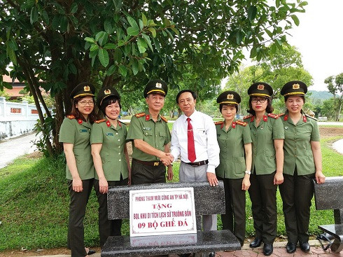 Phòng Tham mưu CATP Hà Nội tặng Khu di tích lịch sử Truông Bồn 9 bộ ghế đá