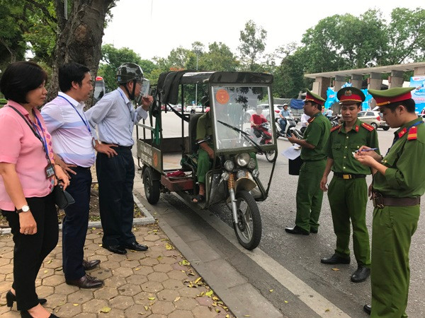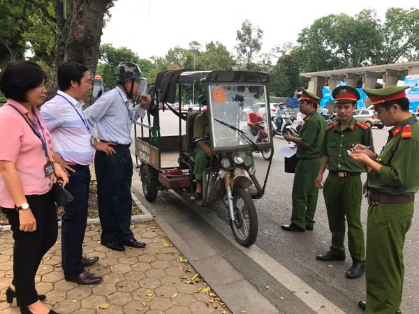 Lực lượng chức năng quận Hai Bà Trưng nhắc nhở trường hợp người điều khiển phương tiện vi phạm quy định ATGT