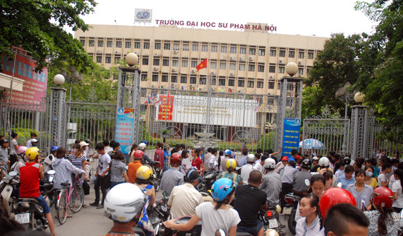 Hàng ngàn phụ huynh đứng chờ tại cổng trường ĐH Sư phạm Hà Nội