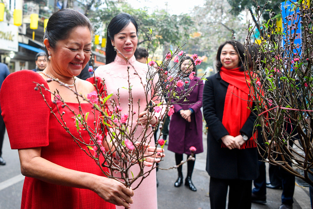 ANTD.VN - Trong khuôn khổ chuyến thăm cấp Nhà nước Việt Nam của Tổng thống Philippines, Phu nhân Chủ tịch nước Võ Văn Thưởng, bà Phan Thị Thanh Tâm và Phu nhân Tổng thống Philippines, bà Louise Araneta Marcos đã cùng dạo phố cổ, tham quan chợ hoa Hàng Lược - nét văn hoá người Hà Nội những ngày giáp Tết Nguyên đán Giáp Thìn 2024.