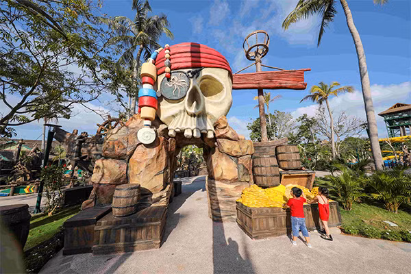 Sự tò mò sẽ dẫn lối du khách đi sâu vào khu vực Cướp biển, nơi những con tàu bị đắm cách đây cả thế kỷ và những chiếc đầu lâu mang vết tích thời gian vẫn còn đó, bên cạnh vô số hòm rương báu vật chất chồng và cả những khẩu đại bác bị bỏ lại đây từ hàng trăm năm trước... Một thế giới hoang dã, bí hiểm được mô tả chân thực đến sống động, qua những chi tiết kiến trúc, những bức tượng được tạo tác tinh tế, có hồn, đủ khiến du khách lạc lối với say mê trong công viên.