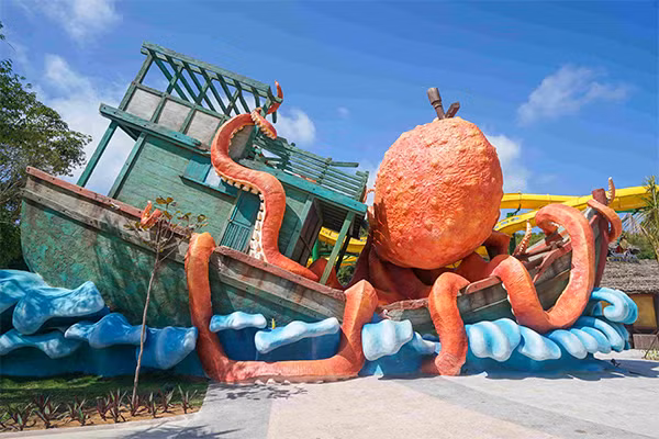 Không gian công viên được thiết kế theo hai chủ đề chính là “Đảo hoang huyền bí” và “Thổ dân hoang dã”, đưa du khách vào hành trình khám phá đầy phấn khích, khi lần lượt trải nghiệm từng khu vực chủ đề gồm Sinh vật biển, Động vật hoang dã, Thủy quái, Thổ dân, Cướp biển.